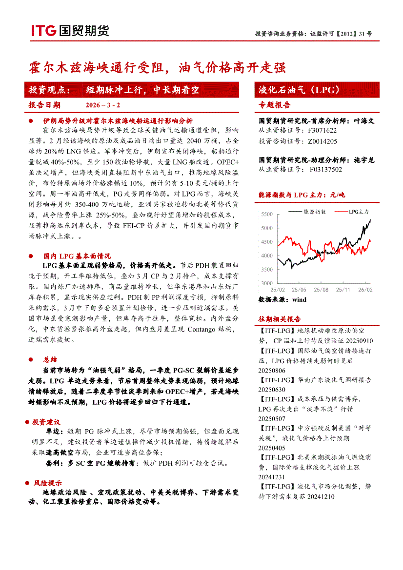 国贸期货-液化石油气(LPG)专题报告:霍尔木兹海峡通行受阻,油气价格高开走强-260302