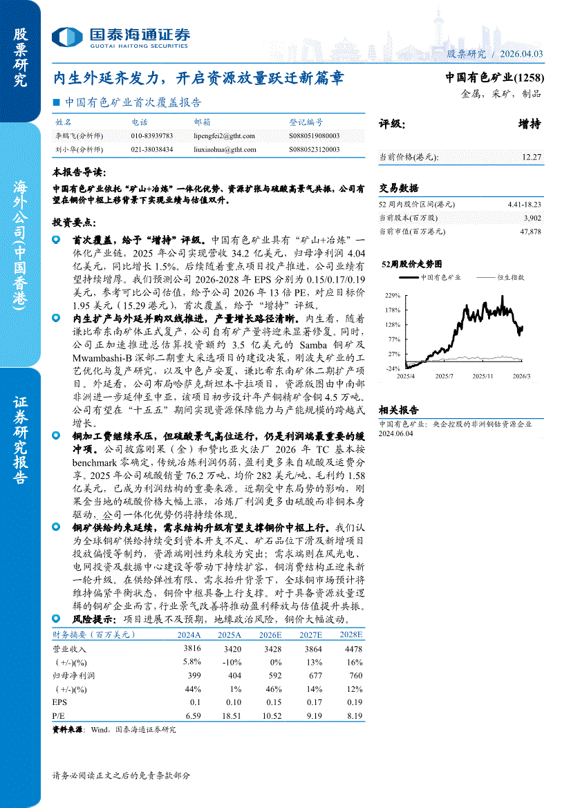 中国有色矿业:国泰海通证券-中国有色矿业-1258.HK-首次覆盖报告:内生外延齐发力,开启资源放量跃迁新篇章-260403