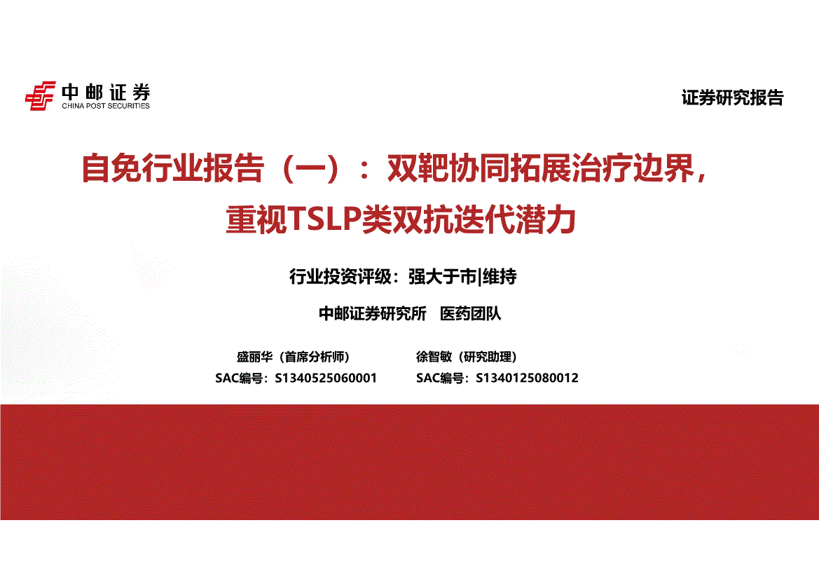 自免行业:中邮证券-自免行业报告(一):双靶协同拓展治疗边界,重视TSLP类双抗迭代潜力-250929