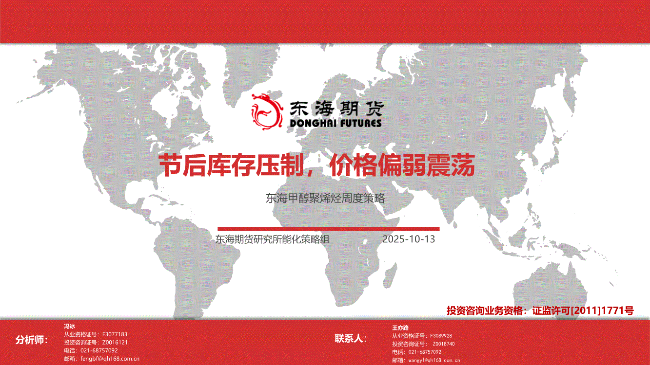 东海期货-东海甲醇聚烯烃周度策略:节后库存压制,价格偏弱震荡-251013