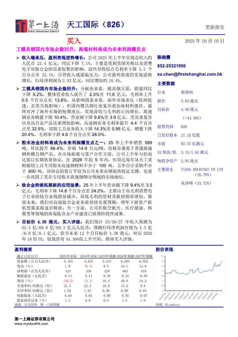 天工国际:第一上海-天工国际-0826.HK-工模具钢国内市场企稳回升,高端材料将成为未来利润爆发点-251010