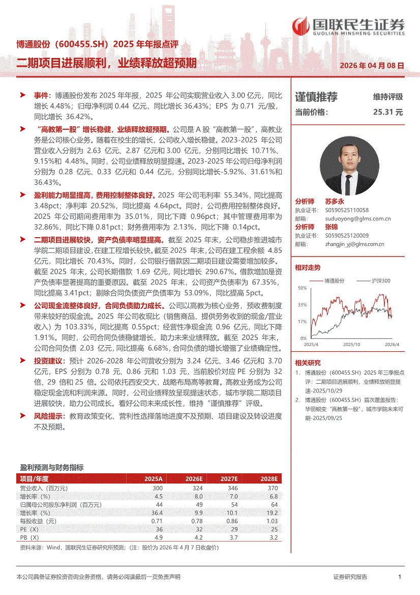 博通股份:国联民生证券-博通股份-600455-2025年年报点评:二期项目进展顺利,业绩释放超预期-260408