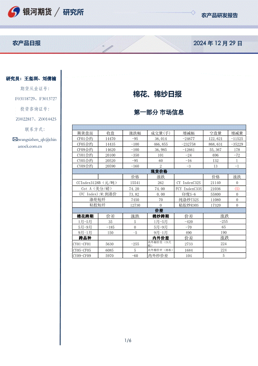 银河期货-棉花、棉纱日报-251229