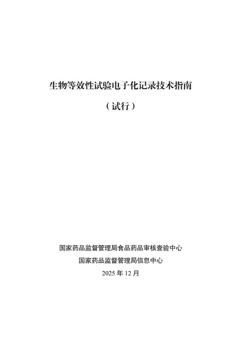 国家药品监督管理局食品药品审核查验中心-生物等效性试验电子化记录技术指南(试行)-251226