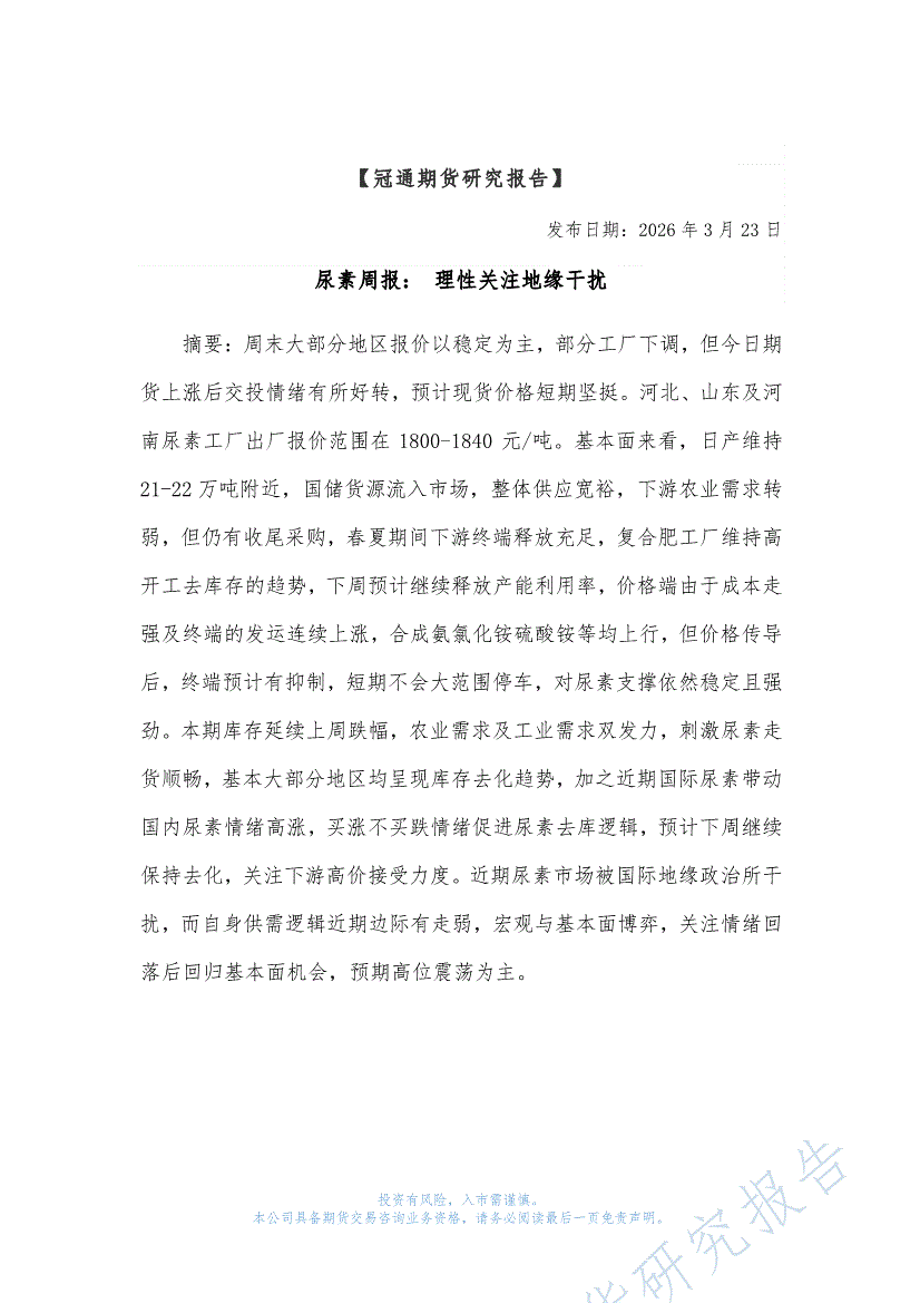 冠通期货-尿素周报:理性关注地缘干扰-260323