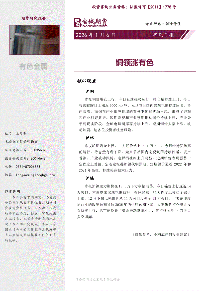 宝城期货-贵金属有色早报-260106