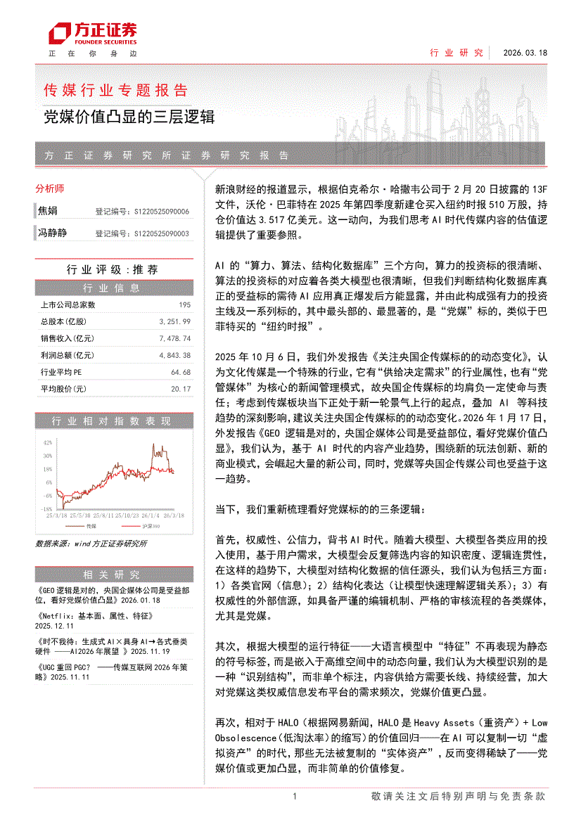 传媒行业:方正证券-传媒行业专题报告:党媒价值凸显的三层逻辑-260318