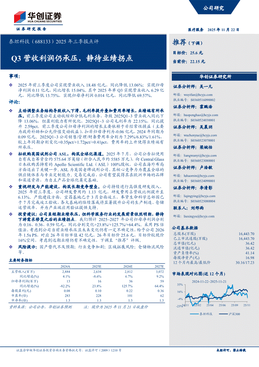 泰坦科技:华创证券-泰坦科技-688133-2025年三季报点评:Q3营收利润仍承压,静待业绩拐点-251122