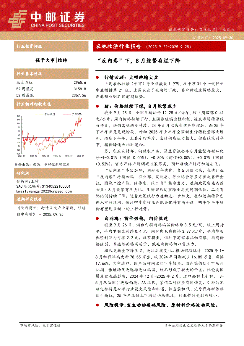 农林牧渔行业:中邮证券-农林牧渔行业周报:“反内卷”下,8月能繁存栏下降-250930