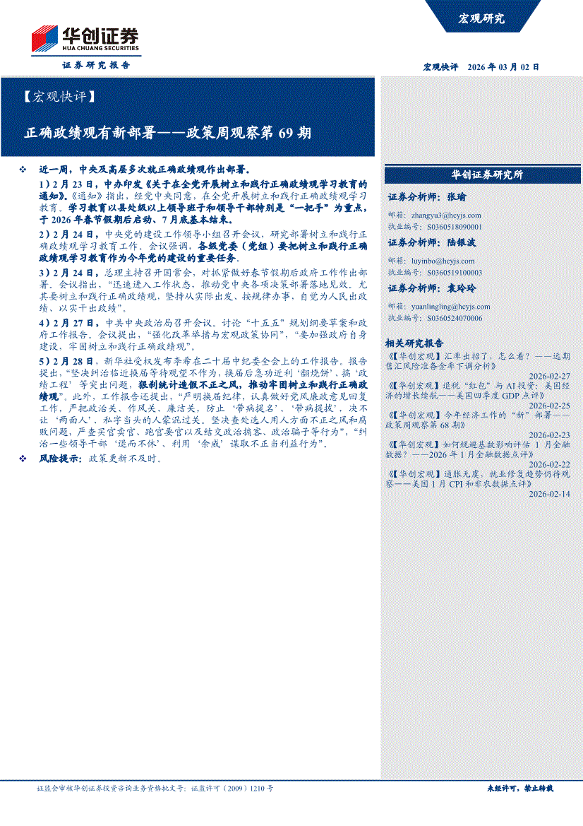 华创证券-【宏观快评】正确政绩观有新部署——政策周观察第69期-260302