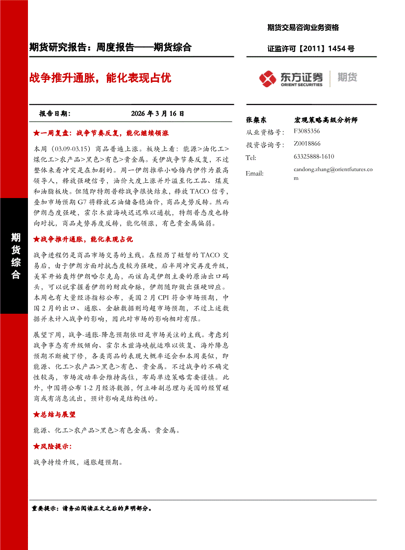 东证期货-期货研究报告:周度报告——期货综合,战争推升通胀,能化表现占优-260316