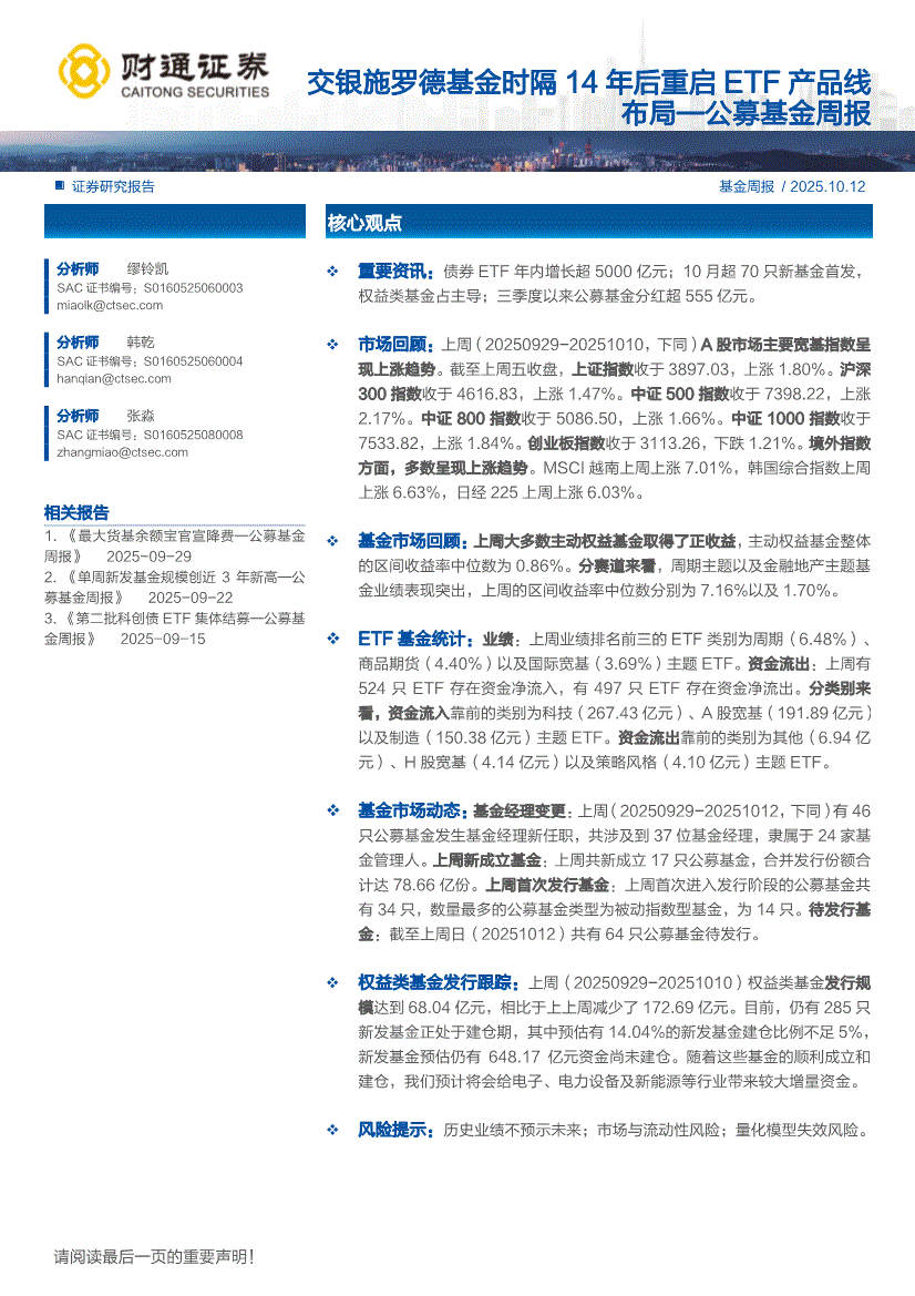 财通证券-公募基金周报:交银施罗德基金时隔14年后重启ETF产品线布局-251012