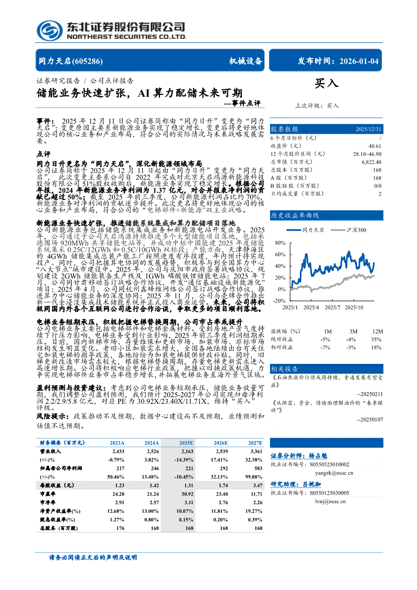 同力天启:东北证券-同力天启-605286-事件点评:储能业务快速扩张,AI算力配储未来可期-260104