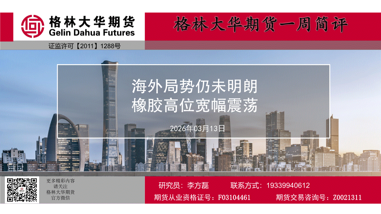 格林大华期货-一周简评:海外局势仍未明朗,橡胶高位宽幅震荡-260313
