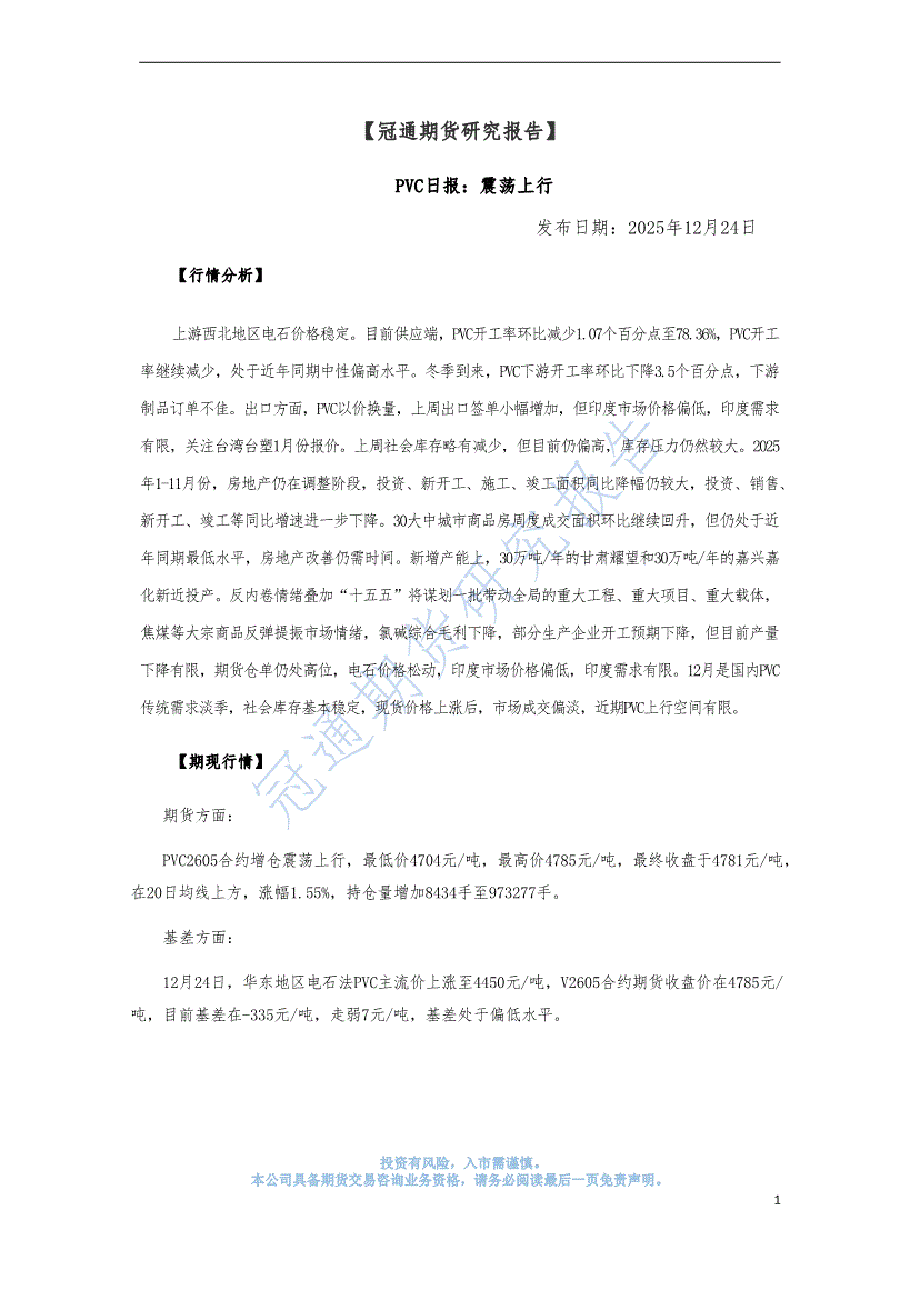 冠通期货-PVC日报:震荡上行-251224