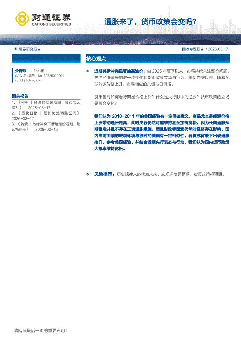财通证券-通胀来了,货币政策会变吗?-260317