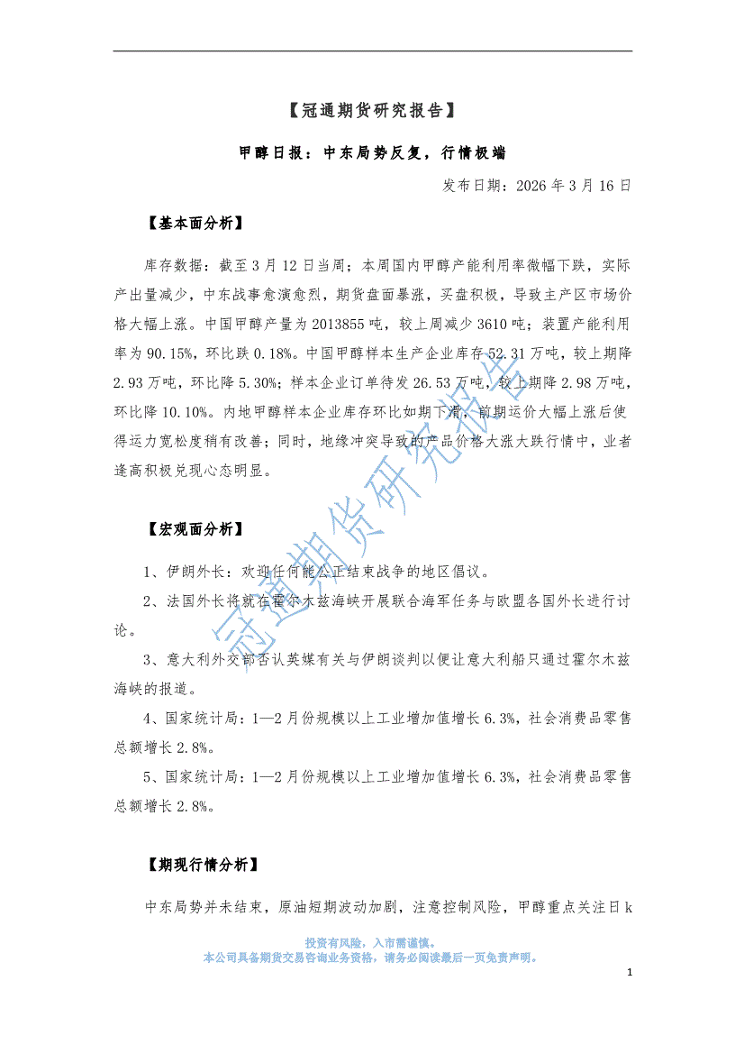 冠通期货-甲醇日报:中东局势反复,行情极端-260310