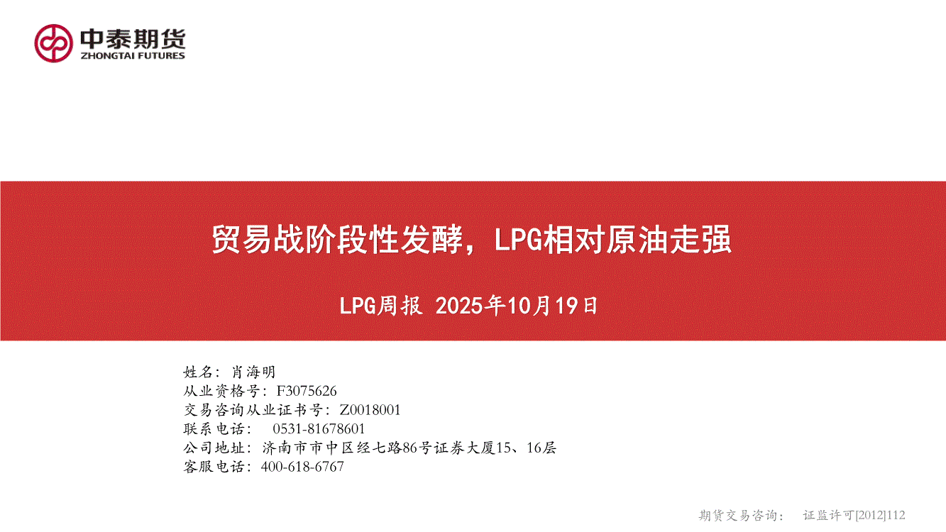 中泰期货-LPG周报:贸易战阶段性发酵,LPG相对原油走强-251019