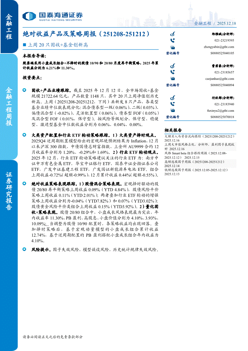 国泰海通证券-绝对收益产品及策略周报:上周20只固收+基金创新高-251218