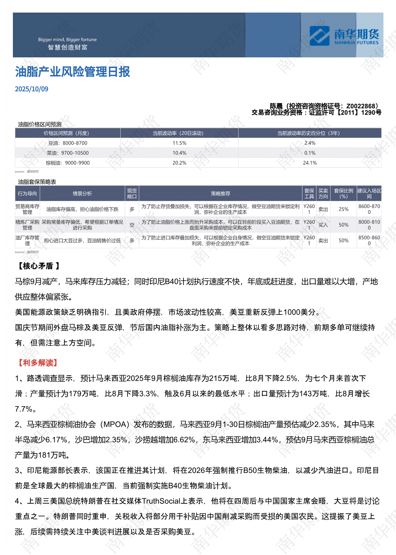 南华期货-油脂产业周报:宏观情绪下油脂走弱,关注企稳之后的上行机会-251014