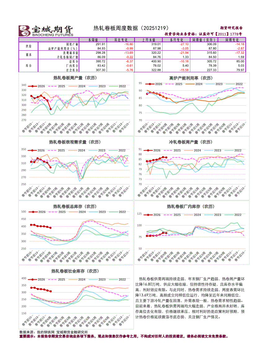 宝城期货-热轧卷板周度数据-251219