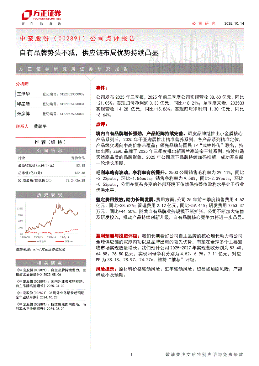 中宠股份:方正证券-中宠股份-002891-公司点评报告:自有品牌势头不减,供应链布局优势持续凸显-251014