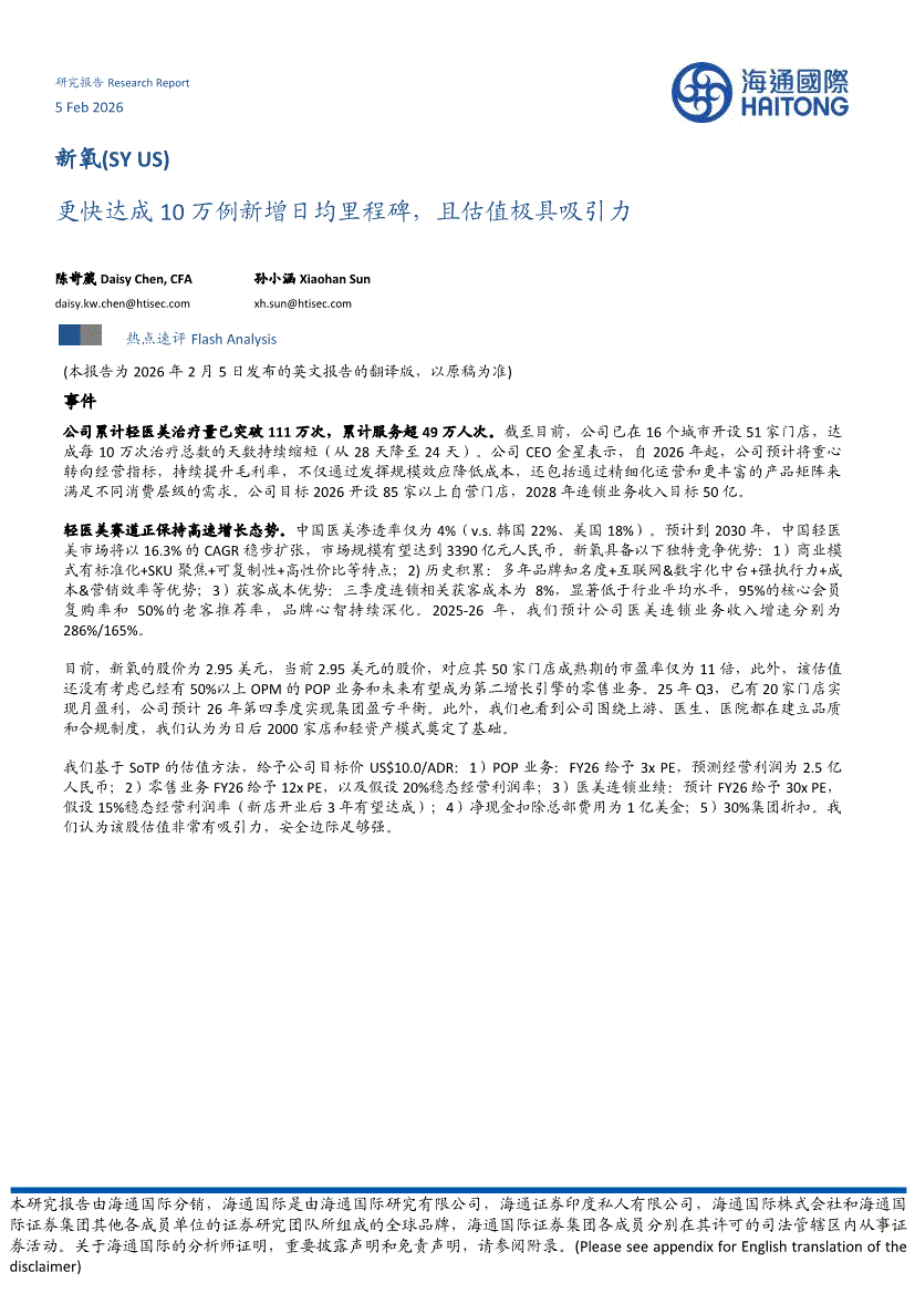 海通国际-新氧-SY.US-更快达成10万例新增日均里程碑,且估值极具吸引力-260205