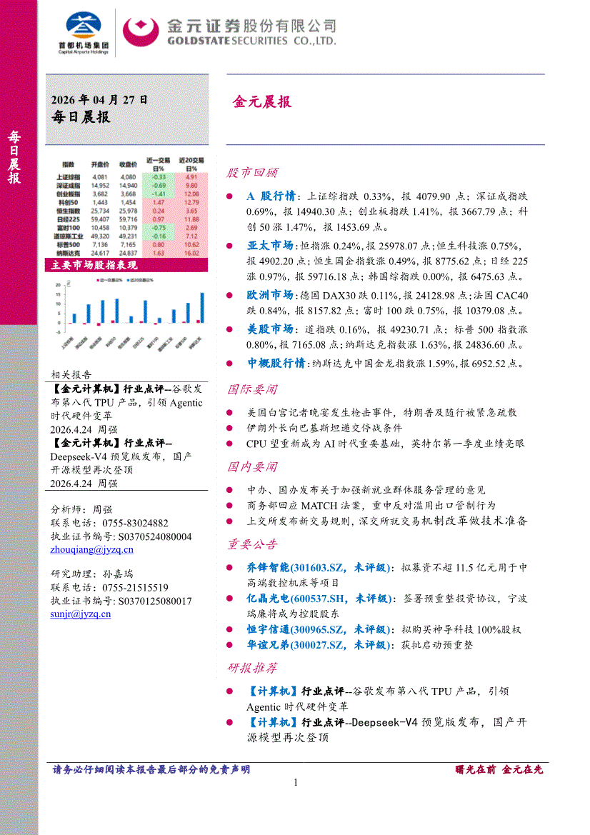 金元证券-晨报-260427