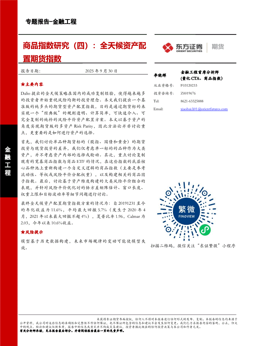 东证期货-商品指数研究(四):全天候资产配置期货指数-250930