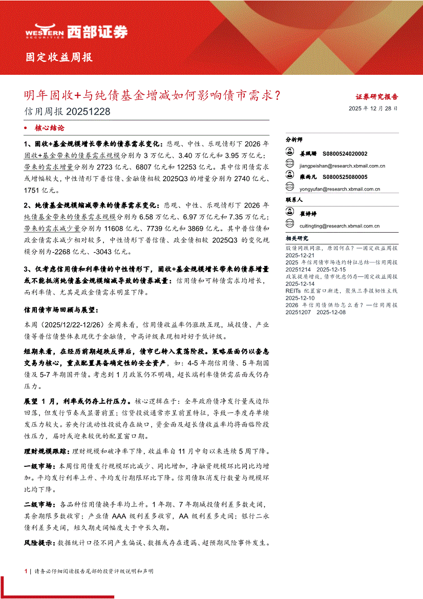 西部证券-信用周报:明年固收+与纯债基金增减如何影响债市需求?-251228