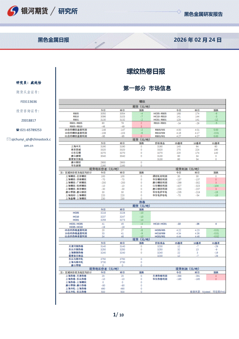 银河期货-螺纹热卷日报-260224