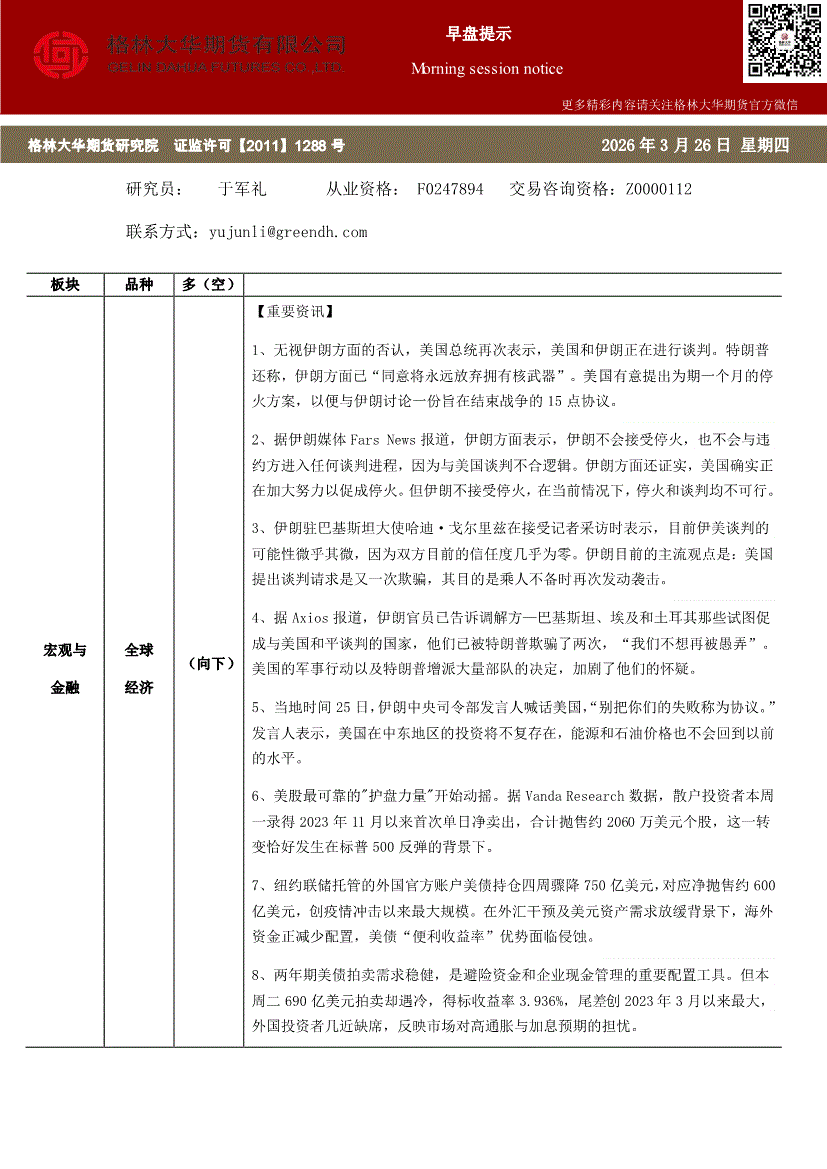 格林大华期货-大类资产周报:地面战仍是大概率-260403