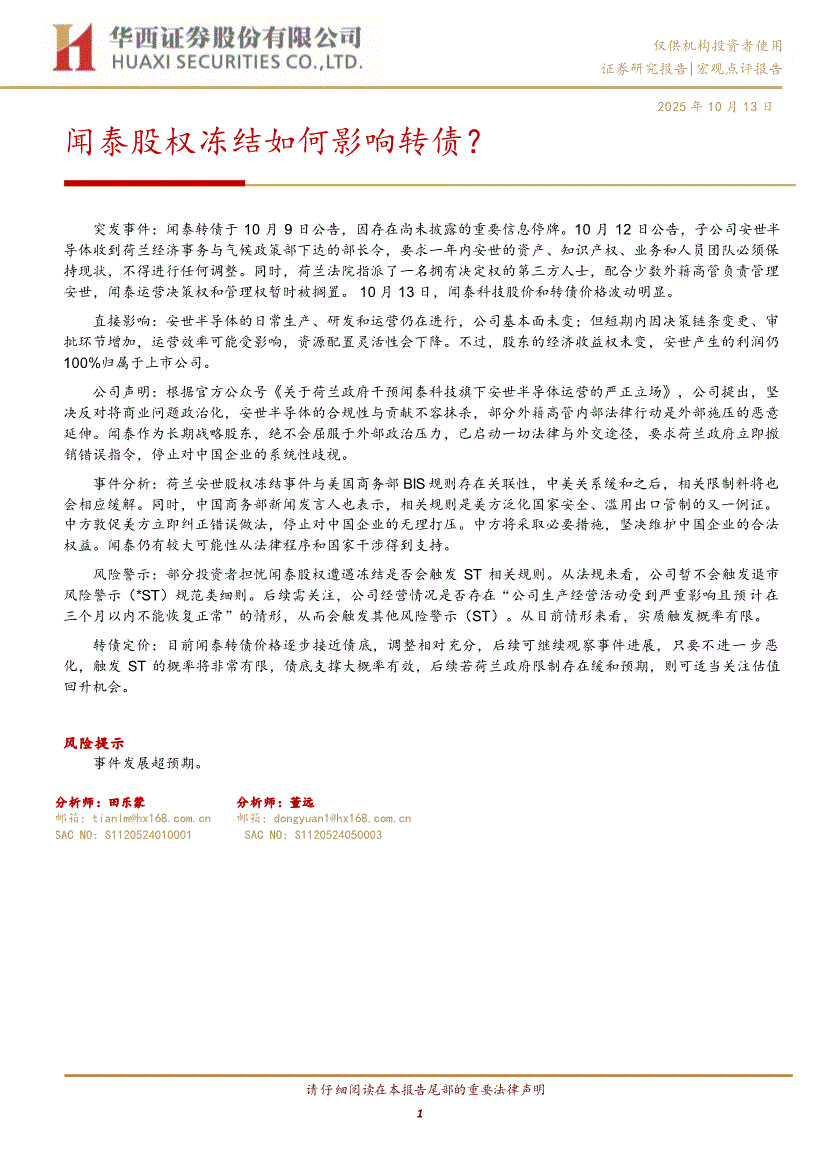 华西证券-闻泰股权冻结如何影响转债?-251013
