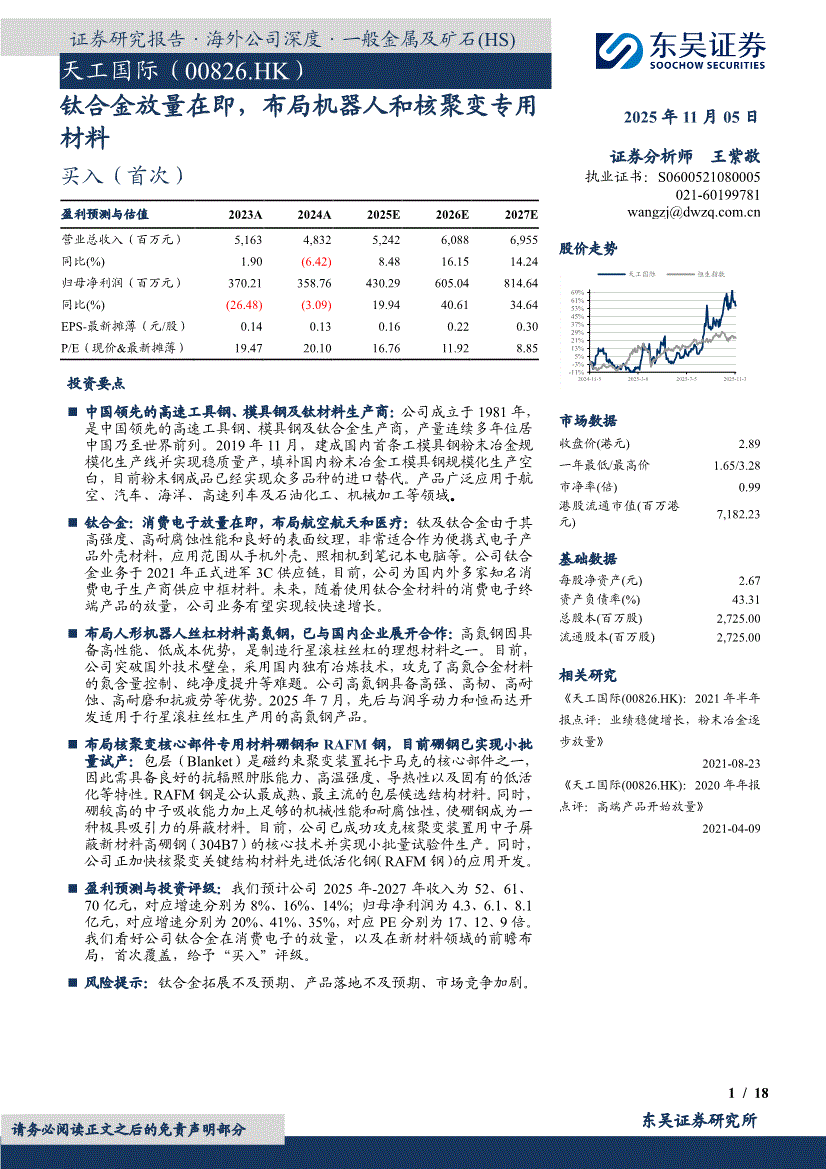 天工国际:东吴证券-天工国际-0826.HK-钛合金放量在即,布局机器人和核聚变专用材料-251105