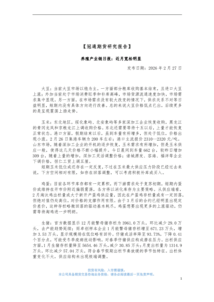 冠通期货-养殖产业链日报:近月宽松明显-260227