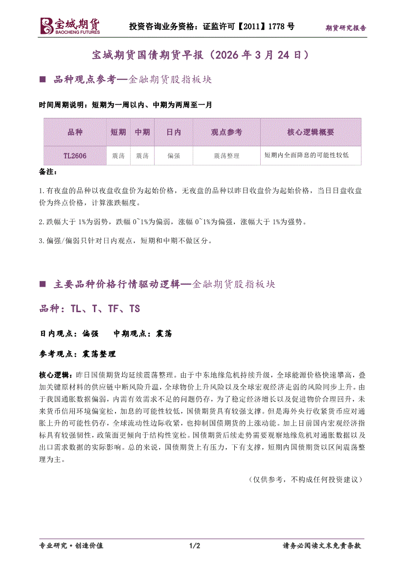 宝城期货-国债期货早报-260320