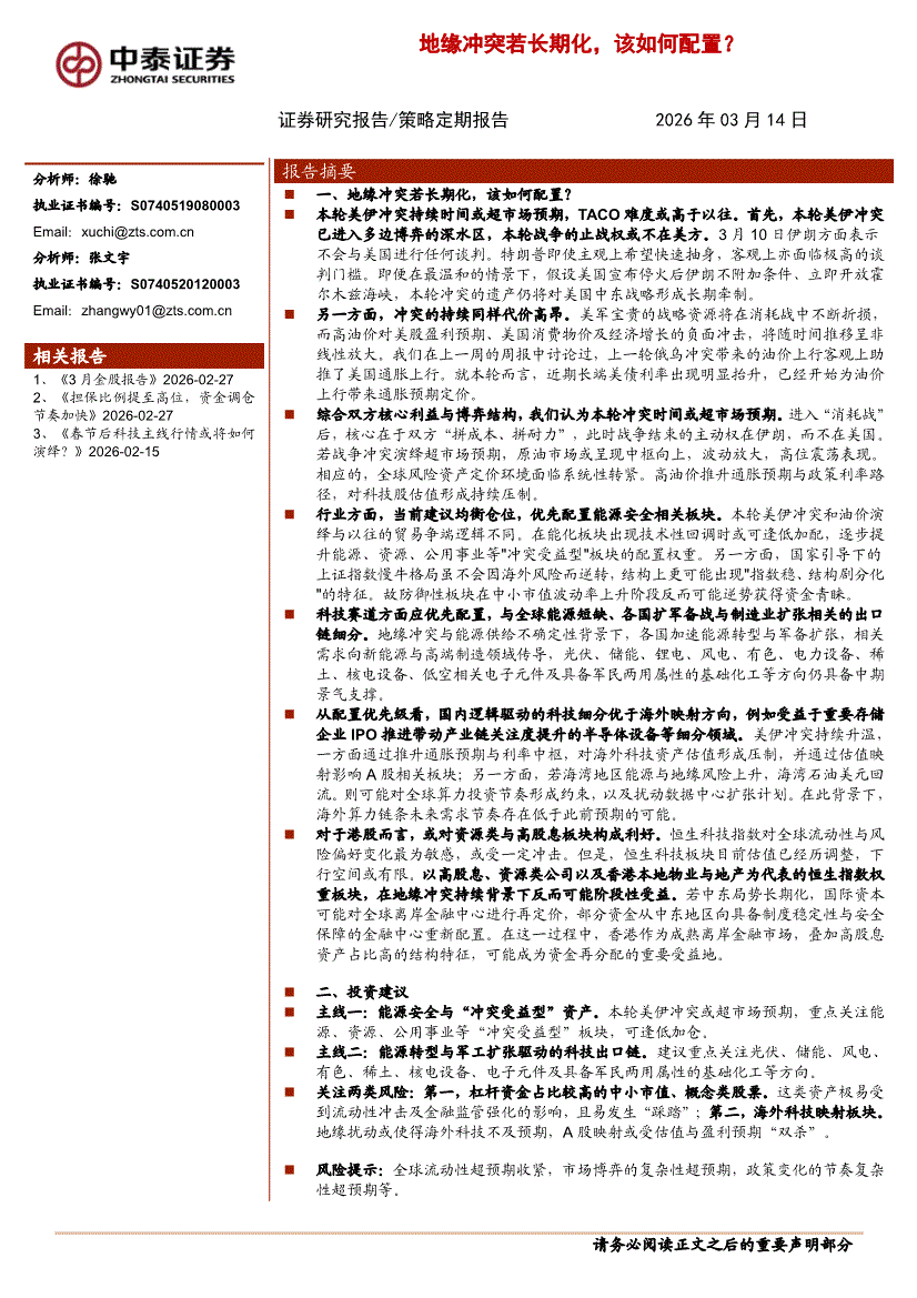 中泰证券-地缘冲突若长期化,该如何配置?-260314