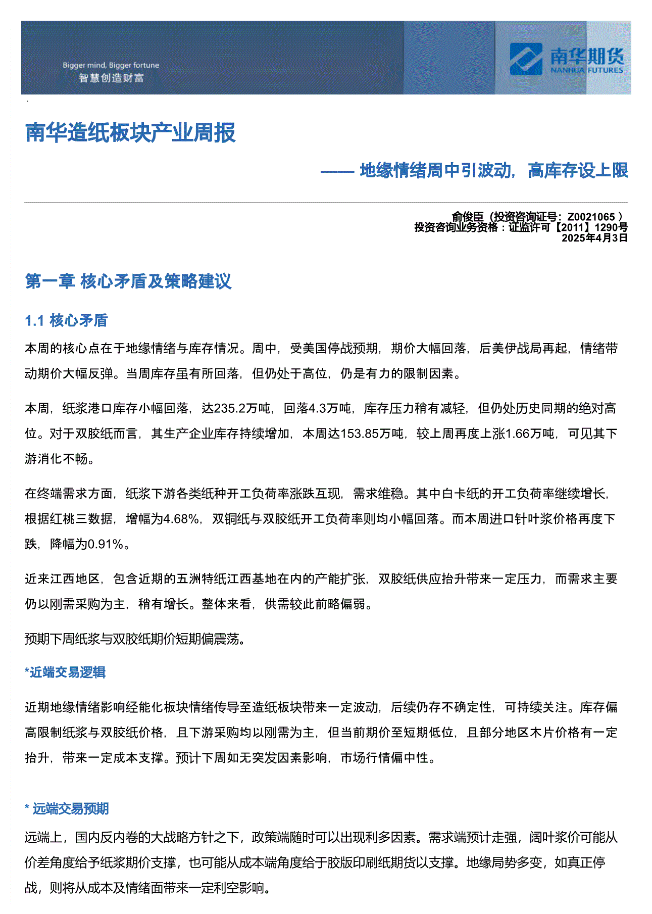 南华期货-造纸板块产业周报:地缘情绪周中引波动,高库存设上限-260403