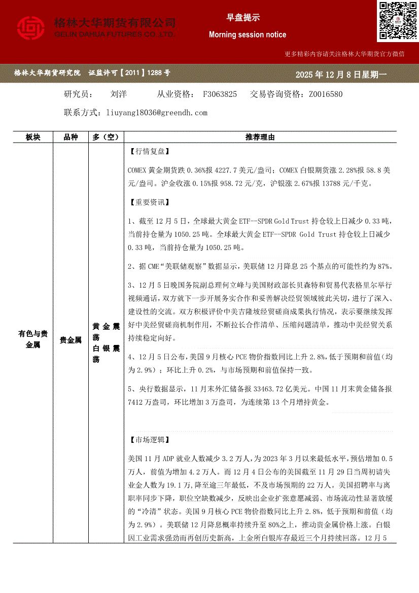 格林大华期货-早盘提示~贵金属-251208
