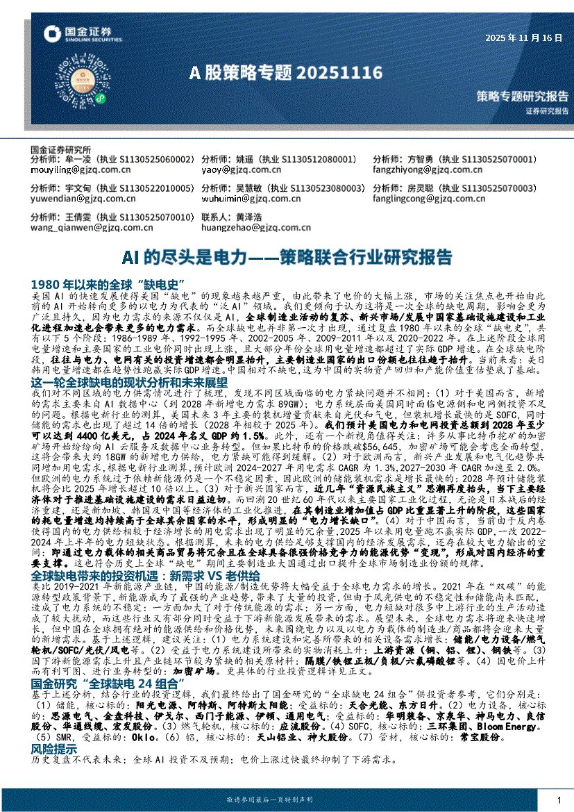 国金证券-A股策略专题:AI的尽头是电力——策略联合行业研究报告-251116