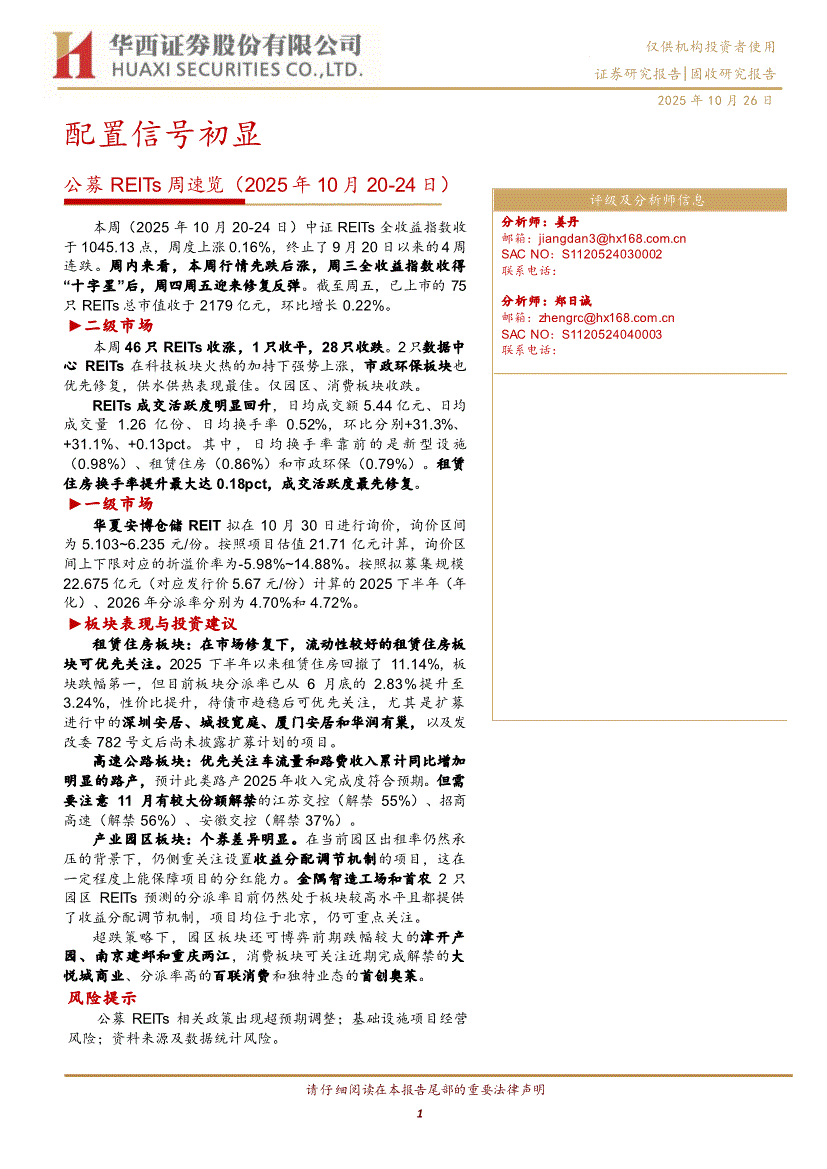 华西证券-公募REITs周速览:配置信号初显-251026