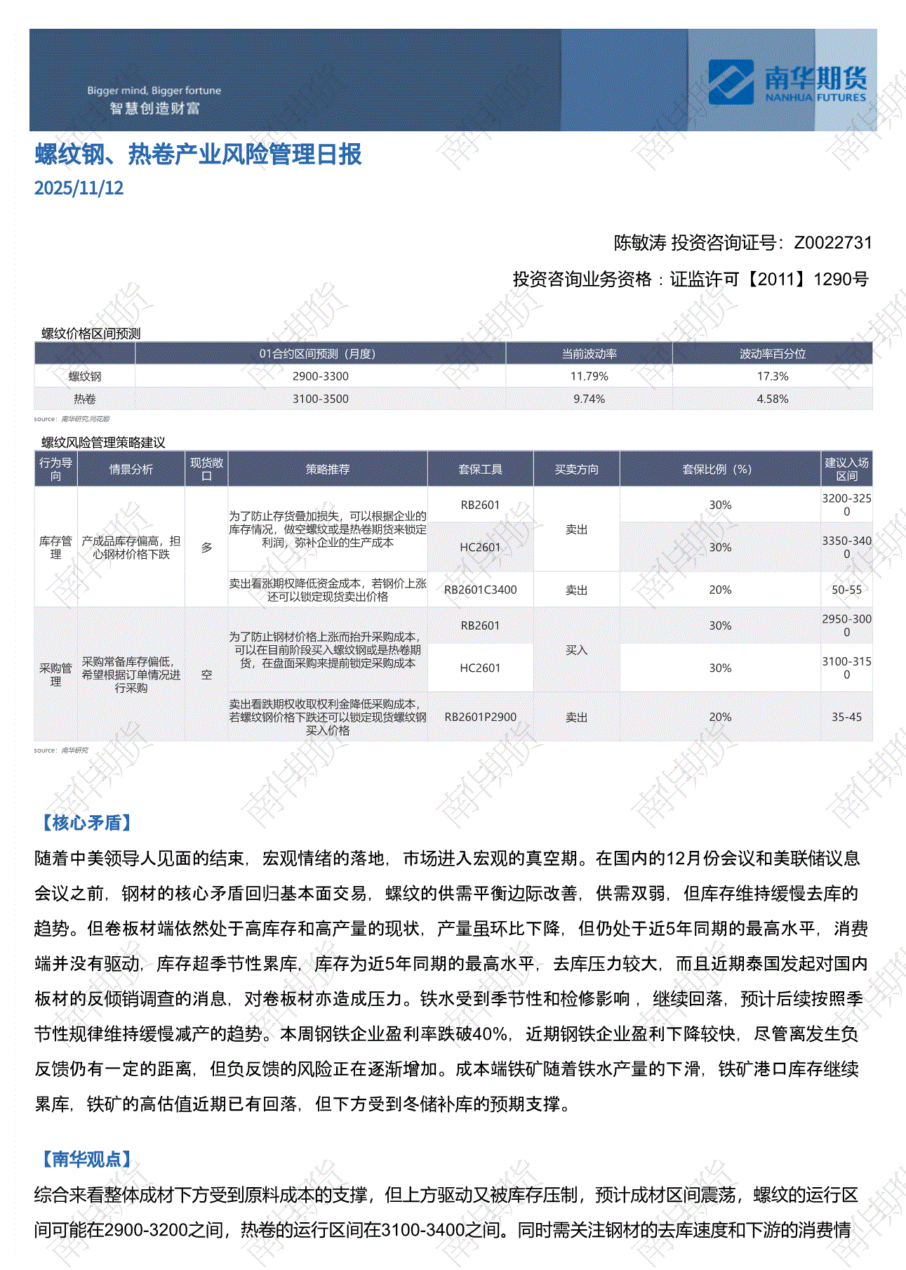 南华期货-螺纹钢、热卷产业风险管理日报-251112