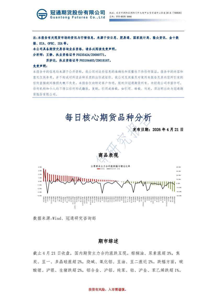 冠通期货-每日核心期货品种分析-260421