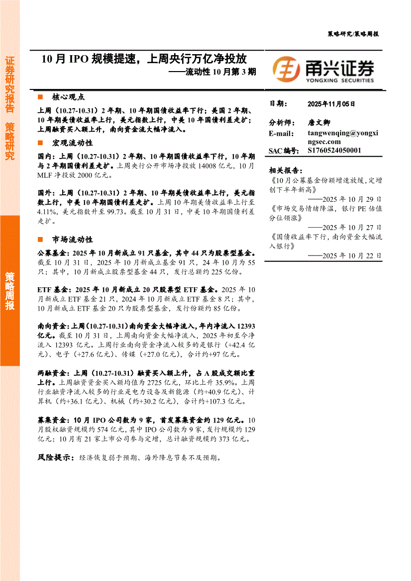 甬兴证券-流动性10月第3期:10月IPO规模提速,上周央行万亿净投放-251105