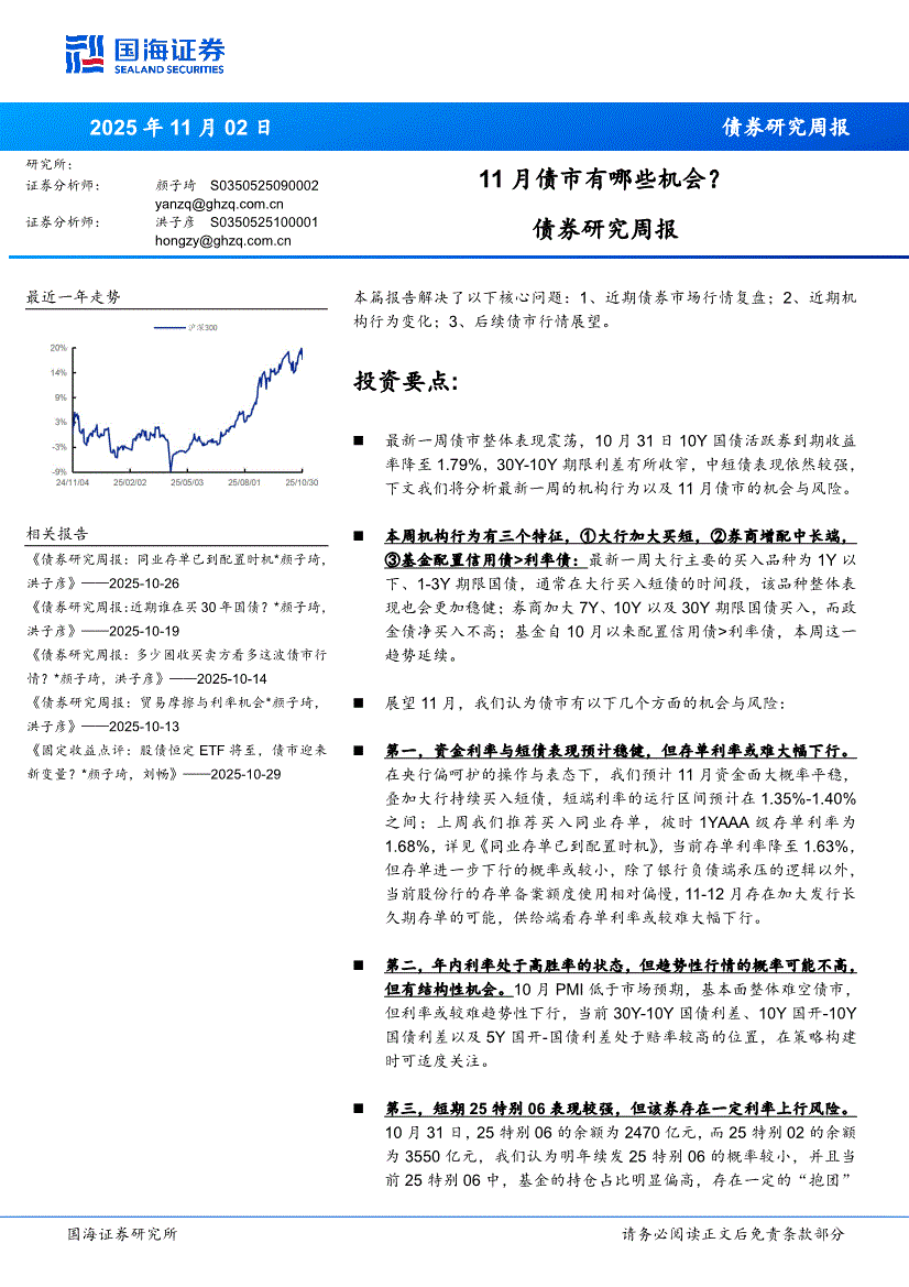 国海证券-债券研究周报:11月债市有哪些机会?-251102