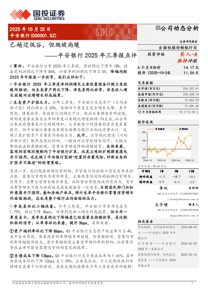 平安银行:国投证券-平安银行-000001-2025年三季报点评:已越过低谷,但爬坡尚缓-251025