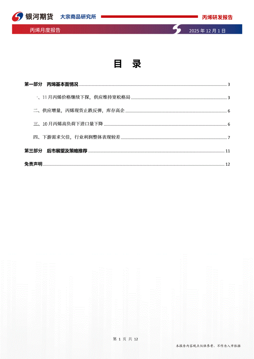 银河期货-丙烯月度报告:高库存压制,供应压力仍然较大-251201