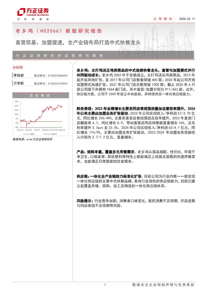 方正证券-老乡鸡(H02066)新股研究报告:直营筑基、加盟提速,全产业链布局打造中式快餐龙头-260211