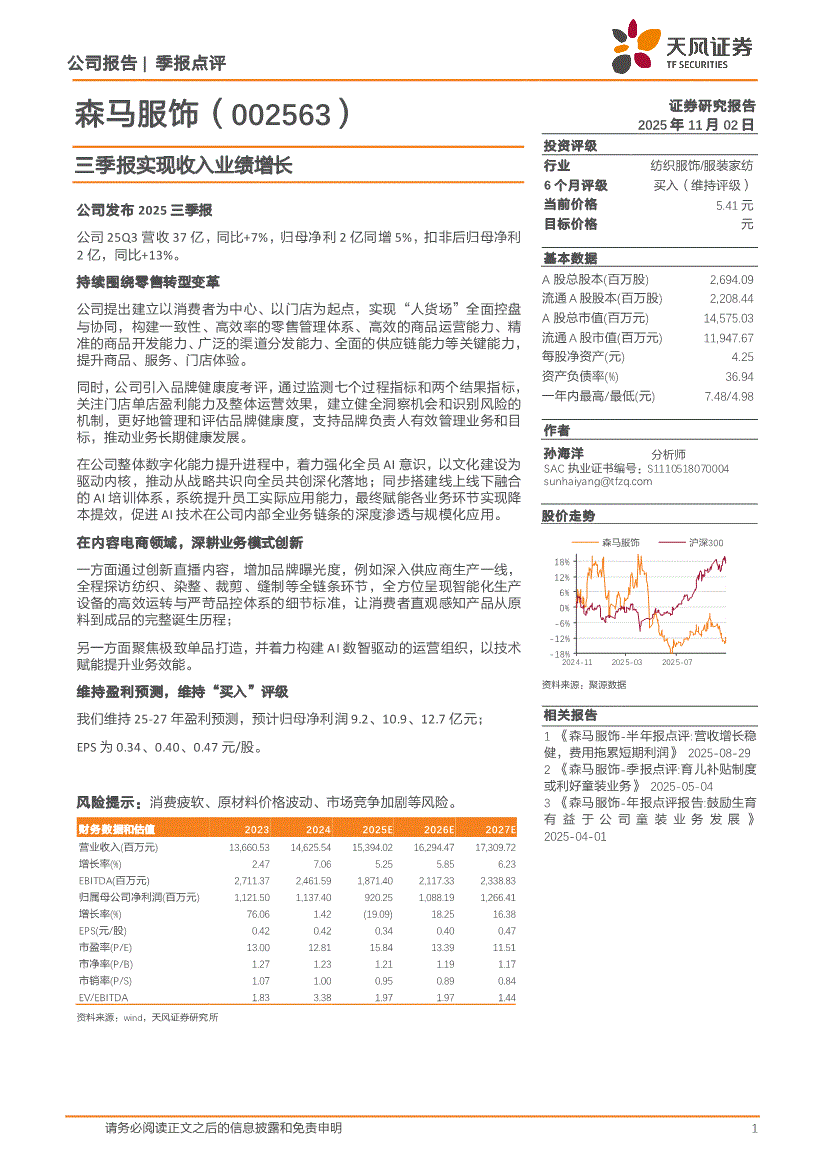 森马服饰:天风证券-森马服饰-002563-三季报实现收入业绩增长-251102