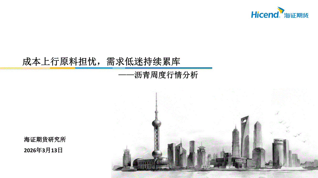 海证期货-沥青周度行情分析:成本上行原料担忧,需求低迷持续累库-260313